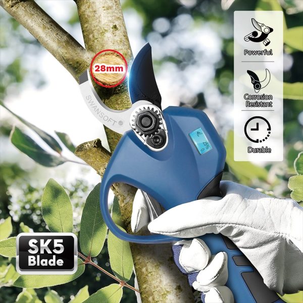 قیچی هرس شارژی جدید SWANSOFT سوآن سافت مدل PRU-28 از یک موتور بدون جاروبک قدرتمند ۸۵۰ واتی قدرتمند بهره می برد که نیروی لازم را برای برش شاخه هایی تا قطر ۲۸ میلی متر فراهم می کند.