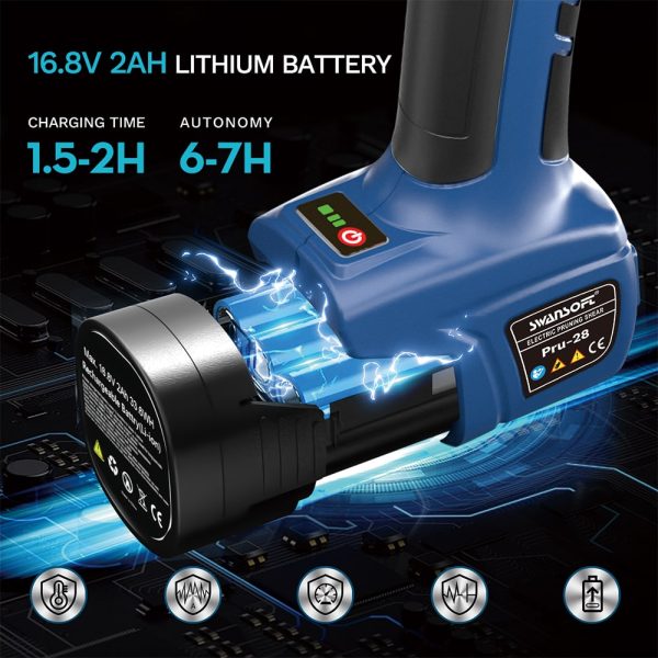 قیچی هرس شارژی جدید SWANSOFT سوآن سافت مدل PRU-28 دارای سیستم ایمنی ضد برش انگشت می باشد.