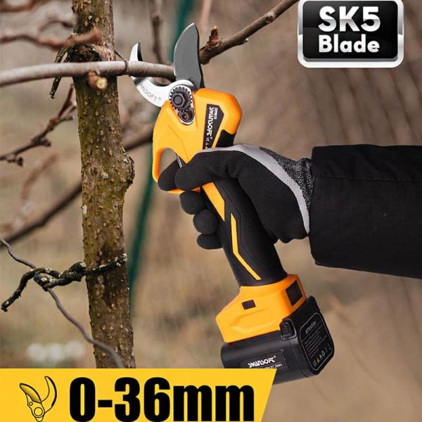 جنس تیغه های قیچی هرس شارژی جدید SWANSOFT سوآن سافت مدل PRU-36 فولاد ضد سایش (SK5) می باشد.